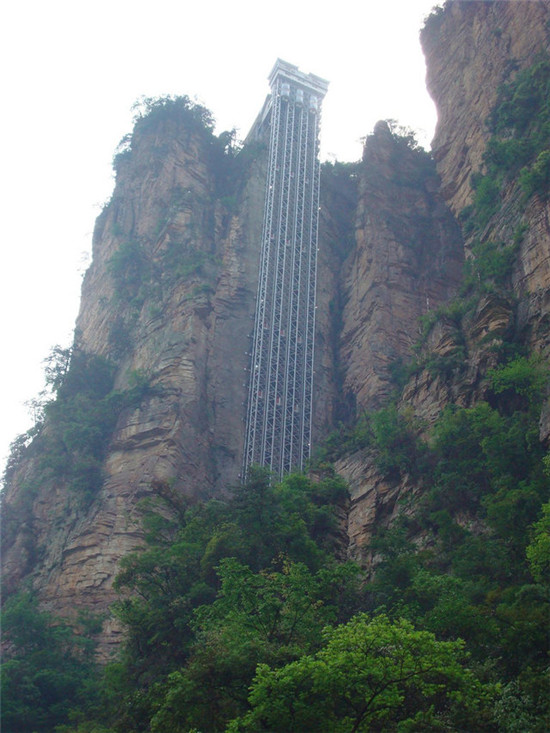 位于張家界懸崖一側的白龍升降機總是格外引人注目。該升降機高達1070英尺(約合326米),有著速度快,容量大,且為雙層的特點,從技術角度講它已經成為世界遺產了。不過,更為重要的是,在上面能看到張家界森林公園無與倫比的自然風光哦。