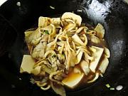3.炒鍋倒油爆香蔥姜倒入洗凈的蘑菇翻炒。
