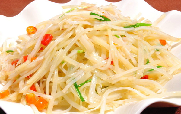 過(guò)程:1.先把青椒洗干凈,然后切成絲;2.然后把土豆洗凈刨皮切絲,放入水盆洗去淀粉瀝干待用;3.再油入鍋待7成熱時(shí)下土豆絲翻炒;4.其次加入少許水,蓋蓋悶一會(huì)(個(gè)人喜歡吃軟軟的土豆絲哦~)5.最后放入青椒絲翻炒一會(huì),加鹽、蔥就可以放盤子中啦~