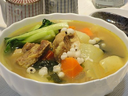 做法:冬瓜去皮切塊。小排骨洗凈切好,先過沸水一遍去血水和浮沫,然后與冬瓜塊、薏仁一起慢燉,煲足火候、調味即可。