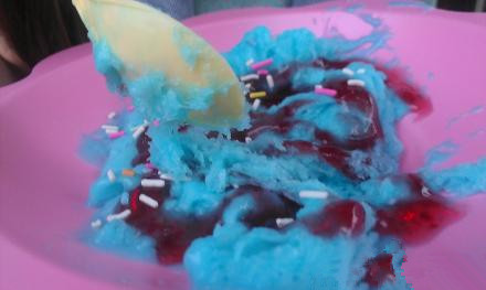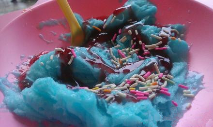 綿綿冰的是2009年底興起的一種新型的潮流的冷飲,味冰塊在特制刨冰機(jī)下擦動(dòng),雪花從洞口紛紛飄落紙碗中,細(xì)細(xì)綿綿,很像冬天的雪花片片,慢慢地堆成一座小雪山。