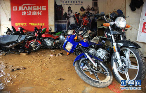 這是博白縣雙鳳鎮(zhèn)一家摩托車代銷店受災(zāi)場景(5月1日攝)