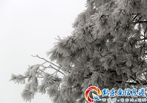 1月5日,伴隨低溫小雪,鎮遠縣境內鎮(遠)石(阡)線最高點扎營關出現了霧凇美景,玉樹瓊花,似人間仙境。【鎮遠驚現絕美霧凇奇觀(組圖)】
