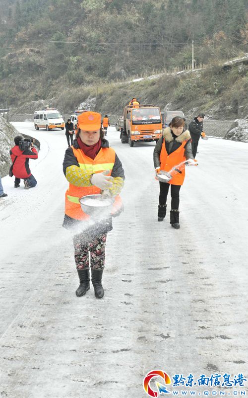 1月4日,凱里市迎來2013年首次低溫降雪和凍雨天氣,境內國道320線及省道306線、308線大部分路段路面出現凝凍,路面結冰濕滑,影響車輛行駛安全。