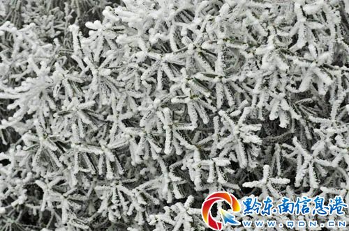 1月7日,由于持續低溫,位于雷山縣境內海拔2178米的雷公山國家森林公園,出現童話般的霧凇、冰柱,晶瑩剔透的玉樹瓊花美景吸引許多游客和攝影愛好者不畏嚴寒前來觀看。(陳沛亮 攝影報道)