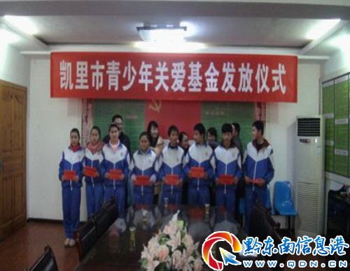 2013年1月16日上午,團(tuán)市委來到凱里經(jīng)濟開發(fā)區(qū)鴨塘街道舉行青少年關(guān)愛基金發(fā)放儀式。團(tuán)市委書記楊帆、鴨塘街道黨委副書記陳通武、街道團(tuán)委負(fù)責(zé)人出席發(fā)放儀式并為貧困學(xué)生頒發(fā)了助學(xué)金。