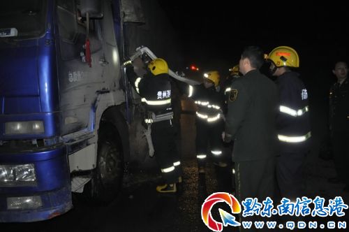 2013年1月18日晚上19時14分左右,施秉縣城關鎮一堵墻分岔路口處一輛大貨車在行駛途中突然起火,車上載運貨物為十余噸的木材。