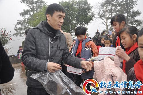 苗鄉侗寨文化產業集團董事長給孩子們發放物質