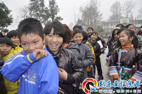 孩子們雖然見到陌生人都既新鮮又靦腆,但卻非常天真活潑,討人喜愛,我們把明信片發下去請他們寫幾句感想,他們開始不好意思,但一會兒就湊在一起,寫下“感謝叔叔阿姨”這樣的話。一些孩子領到衣服、鞋襪后和同學在一起開心地玩,但是當我們的鏡頭對準他們的時候,他們卻不好意思起來。后來,我們去王艷琴家的村子里,一路上我知道她今年11歲讀四年級,是家里的老大,做很多家務,是個能干的孩子。臨走時,我說給她拍一張照片,她趕緊跑了說“不拍”,走了幾步又回過頭來笑著說:“阿姨,你到我家玩。”這話沒有什么“歡迎”、“請”之類的客套,卻是最真誠的邀請了。