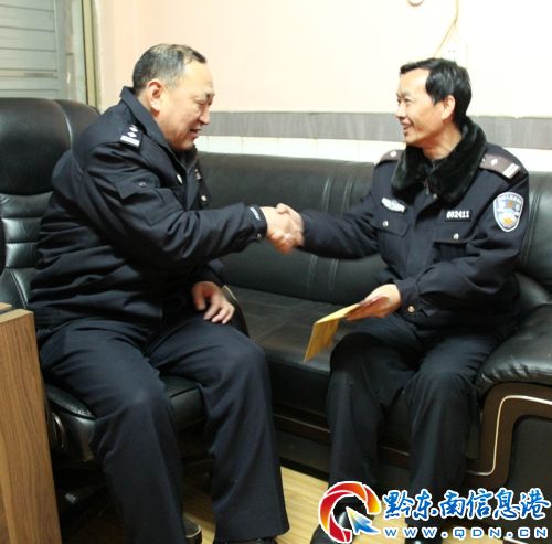 新春即至,1月25日上午,受黔東南州交警支隊長梁吉鋼委托,支隊政委劉貴榮深入到基層大隊——鎮遠縣公安局交警大隊,親切慰問了大隊全體民警、協警,特別是生活困難民警陳禮福。鎮遠縣公安局副局長、交警大隊長張大江等大隊領導陪同慰問。