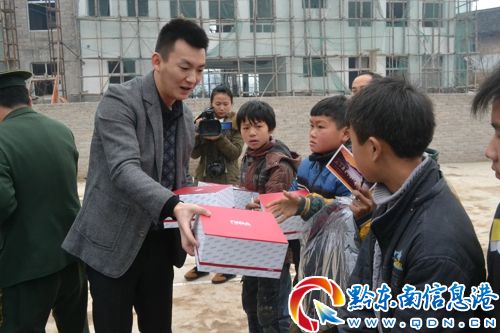 黔東南信息港總經(jīng)理范紅波為留守兒童們發(fā)放捐助物資