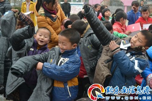 “美麗黔東南·溫暖小腳丫”,黃平縣捐助物資發(fā)放儀式在黃平縣黃飄鄉(xiāng)中心小學(xué)舉行,施秉縣捐助物資發(fā)放儀式在施秉縣白垛鄉(xiāng)九年一貫制學(xué)校舉行。捐助物資發(fā)放現(xiàn)場(chǎng),共為兩校100余名品學(xué)皆優(yōu)、家庭貧困的留守兒童進(jìn)行了每人一件衣服、一雙鞋子、兩雙襪子等捐助物資的發(fā)放。