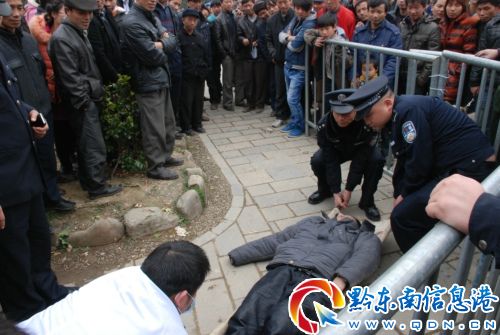 2013年2月15日(正月初六)雷山縣迎來2013年中國雷山“西江杯“苗嶺斗牛大賽,正在圍觀看斗牛大賽的人群絡繹不絕。突然,一名男子昏倒在雷山文化體育館觀眾B區入口,在場執勤的公安民警第一時間送往醫院救助,讓有生命危險的病人轉危為安。