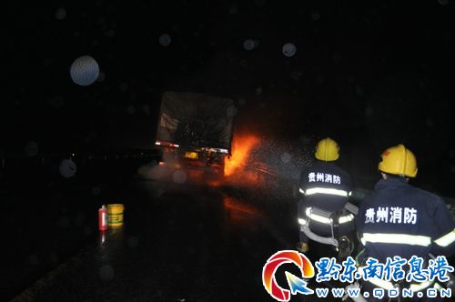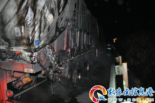 2月21日5時05分,臺江縣消防大隊接到報警稱,一輛滿載煤炭的大貨車在滬昆高速臺江至凱里方向石板橋路段起火,情況萬分緊急,請求消防官兵前往救援。臺江縣消防中隊迅速出動兩輛水罐消防車,一輛搶險救援車,一輛指揮車,官兵13人趕往現場處置。