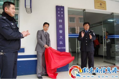 2月21日上午,在錦屏縣公安局三江派出所主要承擔(dān)全縣范圍的社會治安防控、城區(qū)街面巡邏和處置突發(fā)事件等特殊任務(wù)的錦屏縣公安局特巡警大隊(duì)掛牌成立。錦屏縣公安局黨委書記、局長肖文斌、三江鎮(zhèn)黨委副書記、鎮(zhèn)長王建元、錦屏縣公安局黨委委員、副局長周仕龍、局黨委委員、副局長彭城及特巡警大隊(duì)民警和協(xié)勤人員60多人參加了掛牌儀式。