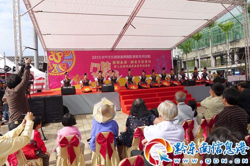 歡樂春節(jié)·醉美多彩貴州第三屆海峽兩岸春節(jié)民俗廟會”于2013年2月14日至17日在臺灣臺中文化創(chuàng)意產(chǎn)業(yè)園舉行。貴州代表團(tuán)共80余人參加了此次活動,所展示非遺精品內(nèi)容涵蓋了民俗文化、非物質(zhì)文化遺產(chǎn)傳承、地方小吃等六個(gè)版塊的內(nèi)容。其中黔東南州侗族大歌、苗族錦雞舞、反排木鼓舞、苗族蘆笙舞、苗族刺繡、苗族蠟染、苗族泥哨、苗族蘆笙制作技藝等項(xiàng)目共有30名演員和8位傳統(tǒng)手工技藝的傳承人參加此次活動,為臺灣市民提供一場精彩的視覺、聽覺、味覺盛宴,獲得了臺灣民眾的熱烈歡迎。臺灣方面也挑選部分名優(yōu)小吃、工藝品及地方民俗文化節(jié)目進(jìn)行展演。