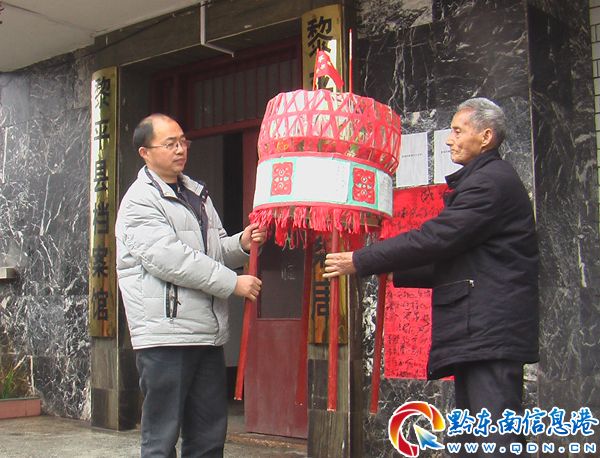 家住黎平縣中潮鎮(zhèn)廖家灣村二組的79歲侗族老人廖家斌,花了半個月時間,修竹子用100多根篾條,手工綁扎編制成一個鳥巢燈籠,燈籠的基礎部位是老人發(fā)自內(nèi)心寫了四首贊頌黨中央的藏頭詩,慶祝元霄節(jié),老人親自送到黎平古城翹街,供觀賞,吸引眾人觀看。其中燈籠上面的一首藏頭詩寫道:習文演武為人民,近遠觀察都認真,平常念記治國經(jīng),總把人民當自親。書成富國匡邦典,記下民眾總關情。在翹街廖家斌老人不斷地給參觀者講解藏頭詩的內(nèi)容。他的這個燈籠,由于手工制作精湛,首創(chuàng)燈籠藏頭詩,廖家斌老人的這個燈籠被元宵節(jié)組委會評為三等獎。(陸書明 攝影報道)