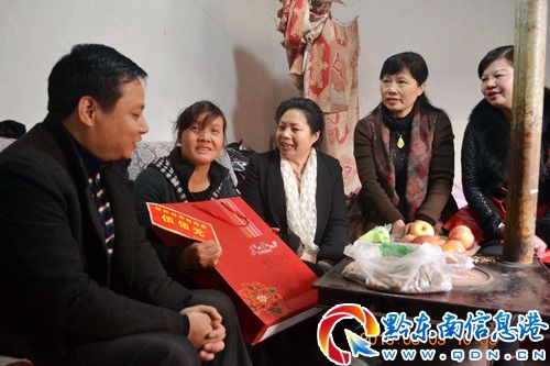 為繼續深入開展以“六送六幫”為主要內容的“牽手連心度難關,和諧穩定促發展”主題實踐活動。3月5日,州婦聯主席陳曉瓊,凱里市婦聯主席陳光蘭,黔東南州婦產醫院負責人一行深入凱里市州林業汽車公司原下崗已故職工沈庭祥家庭,實地了解其遺屬楊通榮(現年78歲)生活狀況;深入凱里市西門居委一組已故丈夫、“雙女兒”戶楊昌秀家庭實地了解生活狀況,并對其進行“三•八”婦女節走訪慰問。