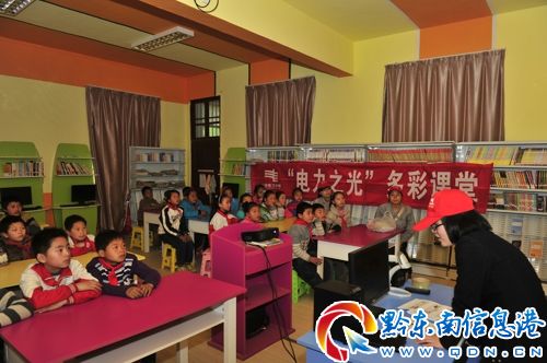 在希望小學(xué)電教室,“電力之光、多彩課堂”氣氛活躍,志愿者當(dāng)起了“老師”,為小朋友們講解了用電常識,志愿者們還為小朋友們發(fā)放了用電資料,培養(yǎng)他們安全用電、節(jié)約用電的好習(xí)慣。