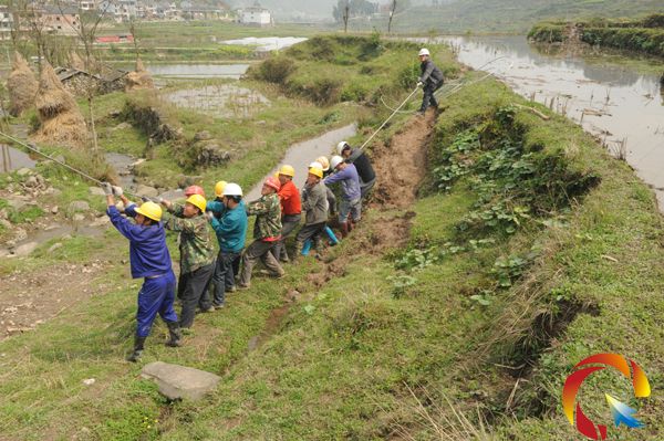 3月21日在新建設的10千伏黃東Ⅱ回貴州黃平機場電力專線施工現場,一批戴著安全帽,穿著工作服的電力建設施工人員在緊張的忙碌著。為了機場供電專線按計劃順利完工,他們幾乎每天都忙著裝金具,拉線、緊線等工作。