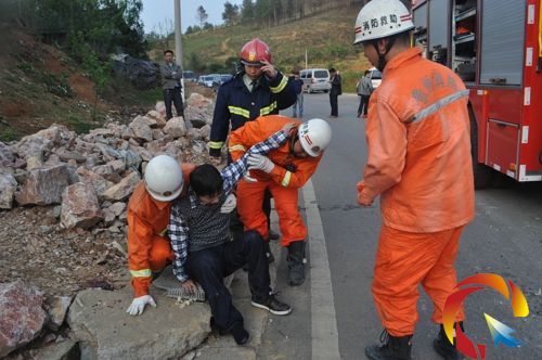 到達現(xiàn)場后,現(xiàn)場一片狼藉,一輛小轎車于一輛農用車迎面相撞,小轎車車頭已嚴重變形,駕駛員被困在車中無法動彈,車上后座一名人員躺在座位上昏迷不醒,另有兩名受傷人員在路旁休息。了解情況后,現(xiàn)場指揮員立即組織官兵分成三組,一組對現(xiàn)場進行警戒,一組將路邊兩位受傷人員和后座昏迷女士轉送到救護車,另外一組對駕駛員開展救援,由于車頭已經嚴重變形,被困人員的一條腿被卡在門于車頭變形較為嚴重的地方,救援人員立即對被困人員開展救援工作,經過10分鐘的救援,成功將被困人員救出,并轉移到救護車。(張金才)
