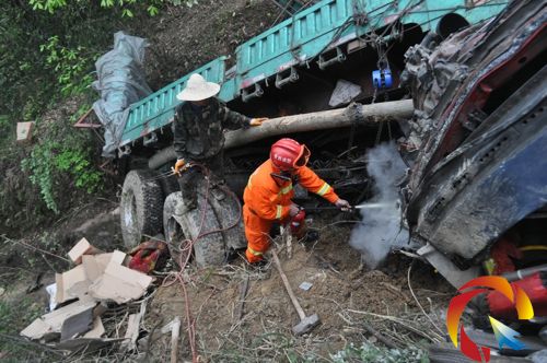 70度的半坡讓整個車輛搖搖欲墜,一旦使用大功率救援設備,30余噸的西瓜加上20余噸的車身就會再次下滑,不但被困人員無法救出,還會造成救援人員意外傷亡和被困者遺體二次被轍壓,救援工作無法展開。3月24日7時10分,縣政府立即啟動應急救援預案,成立臨時指揮部,多部門協同配合,制定祥細救援方案。一是由消防官兵具體負責現場監控和被困人員救援出轉移;二是公安交警部門負責警戒,嚴防無關人員介入;三是聯系氧焊施工人員對車輛進行分切割,開開辟救援空間,同時消防官兵攜帶手提式滅火器進行觀察,嚴防切割時造成火災事故。