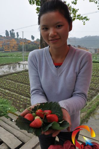 13日上午,記者駕車到下司草莓園采訪。因為這一天是周六,所以游客眾多,公路兩旁已停滿車輛,而草莓地里,是勾腰采摘草莓的游客,少的田地有三、四人,多的有近10人,大家邊摘邊說笑,所以不時有歡聲笑語傳來。