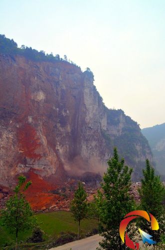 記者趕到現(xiàn)場時(shí),坍塌面還有小規(guī)模巖體坍塌,它們掉落發(fā)出的響聲像打雷,而“雷”響之后,下方就會有大量的塵土像煙霧般升騰起來。而在坍塌面右側(cè),尚有一塊較大危巖依附在巖壁的主體上,搖搖欲墜。凱里有關(guān)部門預(yù)測,該危巖約10萬方。