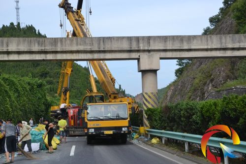 接到報警電話后,凱里路政執法大隊立即趕赴現場救援。路政隊員一邊趕赴現場,一邊與車主取得現場情況,一邊聯系吊車、養護部門。由于啤酒瓶散落一地,不清理干凈無法展開救援,現場人手少,路政隊員就動員現場群眾一起清理啤酒瓶。16時30分,超車道上的啤酒瓶被清理干凈,吊車進行起吊,并將肇事貨車拖離高速公路。16時58分,高速公路半幅通行。