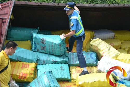 據了解,貨車上的啤酒瓶重達20多噸,一共300多袋,每袋90個瓶子,全部灑落在路上,且很多瓶子已經破碎,給清理帶來了難度。經過3個小時的清理,救援終于把所有啤酒瓶和散落在高速公路上的玻璃碎片清理干凈,凱麻高速全線通車。 (聶鑫 攝影報道)