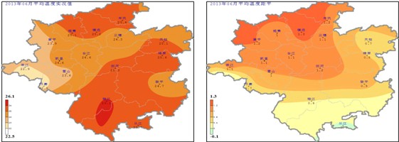圖1 黔東南州16縣市2013年6月平均氣溫、距平圖