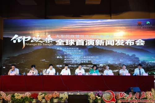 7月14日,大型民族管弦樂苗族歌舞劇《仰歐桑》在北京舉行新聞發布會,宣布該劇8月1日將登陸國家大劇院,至此拉開《仰歐桑》進行全球首演的序幕。國家文化部藝術司副司長陶誠、中央民族樂團團長席強、國家文化部副巡視員翟桂梅、中共貴州省委外宣辦主任哈思挺、中共黔東南州委副書記楊華昌、貴州省黔東南州人民政府副州長吳育標與來自全國100多家媒體共同見證了“苗族美神” 《仰歐桑》的誕生歷程。州委常委、州委宣傳部部長、州委統戰部部長唐官瑩主持新聞發布會。