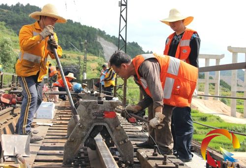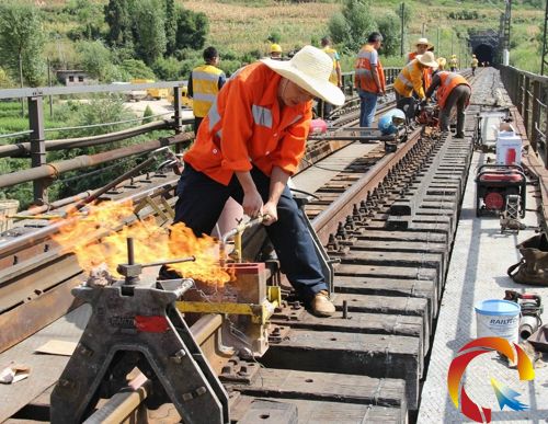 自6月中旬以來(lái),貴州省出現(xiàn)大范圍高溫天氣,氣溫基本在35℃以上,最高鐵路軌溫達(dá)62℃。然而面對(duì)持續(xù)高溫?zé)崂酥校F州鐵路人全力以赴戰(zhàn)高溫、斗酷暑,每天加班加點(diǎn),對(duì)線路進(jìn)行鋁熱焊施工,排查安全隱患,確保行車(chē)設(shè)備穩(wěn)定。圖為8月8日,成都鐵路局凱里鐵路職工在貴州鐵路南山河大橋?qū)︿撥夁M(jìn)行打磨焊接維修施工作業(yè)。(姜澤鵬 葉志權(quán) 攝影報(bào)道)