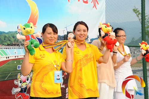 據悉:本次運動會劍河縣共派出6名選手(3男3女)參加網球單、雙打項目比賽,分男、女雙打各一組,男、女單打各一組。女子雙打楊桂蘭、邰昌蘭組合通過淘汰凱里代表隊后,不敵黎平代表隊而位居第二名,為該縣贏得第一枚銀牌。