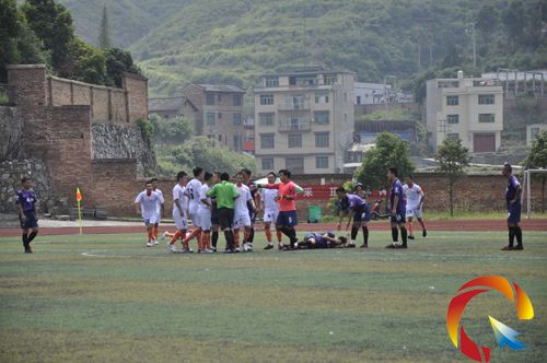 下半場開始,雙方便展開激烈競爭,在比賽進行到50分鐘的時候,由于身體接觸,場上隊員之間起了爭執,比賽一度終止。此時,場外天柱隊的一名替補隊員19號沖到場上推人被裁判和警衛攔下,主裁判立刻出示紅牌給予警告。