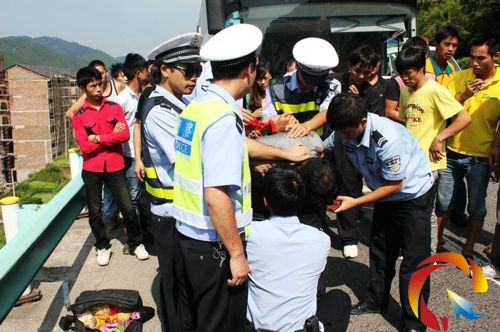 據介紹,9月15日14時許,黔東南州交警支隊高速大隊三中隊事故組民警周靖、彭茂盛、吳明、王安知在處置好一起事故現場后,繼續在高速公路上巡查,當車輛行至滬昆高速1622km(湖南往貴陽方向源江橋段)時,民警發現一輛由義烏發往貞豐的長途大客車(車牌號為皖M19202,核載63人,實載60人)停在了行車道上,車上很嘈雜,還伴著呼救聲。很快,民警看到有幾名乘客從大客車上走下來,他們神色慌張……民警斷定出事了,立即下車查看情況。