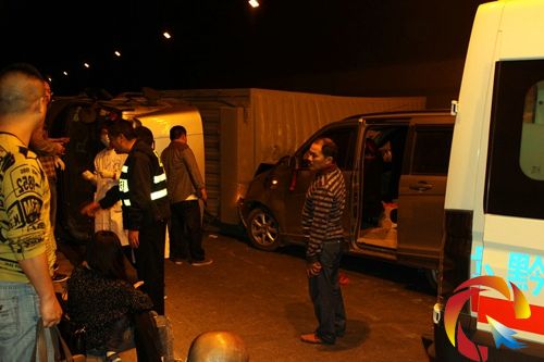在處置事故時,路政執法人員以及交警先將受傷人員被送入醫院治療。隨后,交警和路政人員將墜落于地的貨物一箱箱搬上了車廂內。到10月8日凌晨1時30分,事故處理完畢,滬昆高速公路交通恢復正常。(陳婧 攝影報道)