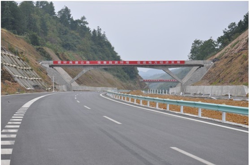 驅車駛入思劍高速公路鎮遠段,只見嶄新的柏油路筆直寬敞,路基、橋梁、隧道等工程都已完工,而在高速公路主線兩旁,施工人員正忙著進行收費站、服務區、加油站、加水站、停車區、綠化、邊坡修整等施工,與此同時,機電工程、防護網架、交通標志、路面標線以及監控、收費、通信三大系統工程施工也正在緊張進行。