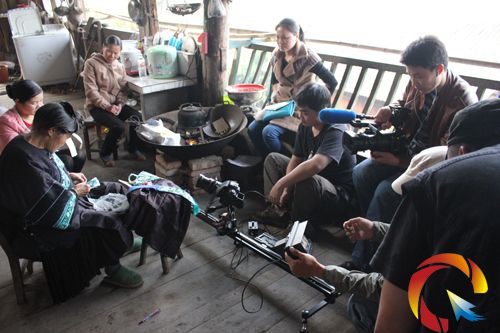 攝制組在采訪收藏畢德森中尉墓碑的侗族老人吳東梅
