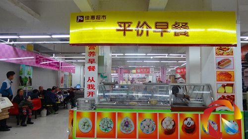 2011年6月26日,“網開一面”面館打出“貴州首家平價早餐”旗號;2013年9月22日凱里市平價早餐也亮相佳惠超市。今日,記者走訪萬博店佳惠超市探訪身處“內宮”中的平價早餐店。