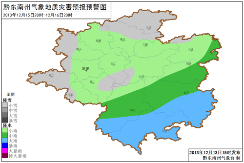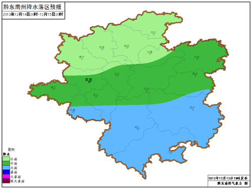 據最新氣象資料分析,受南支槽和冷空氣共同影響,預計12月14~16日我州將出現明顯的降溫降雨天氣,州中部以南地區有大雨。