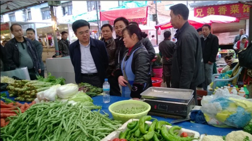 考察中,廖飛州長一行先后深入到洗馬河街道、灣溪街道、西門街道、城西街道、大十字街道等5個(gè)凱里市主要城區(qū)進(jìn)行實(shí)地視察。并認(rèn)真聽取楊承進(jìn)常務(wù)副市長關(guān)于凱里市農(nóng)貿(mào)市場(chǎng)規(guī)模、銷售情況及農(nóng)副產(chǎn)品平價(jià)商店經(jīng)營模式的情況介紹。