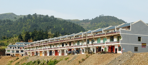 桐子灣新區8排兩樓一底富有地方特色的移民小樓像一道獨特的景觀,村民幸福的歡笑聲隨風傳來。