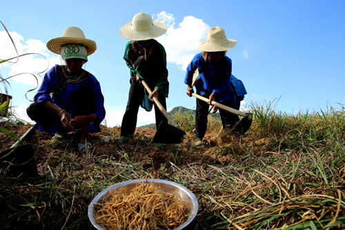 “今年雖受旱災的影響,但基地太子參收成還不錯,今年我種的27畝,預計收入超過40萬元。”吳正遠一邊交待婦女們挖太子參注意的問題一邊對筆者說,他將前來幫忙的群眾分為兩批人馬,一批挖太子參,一批開始下百合種。