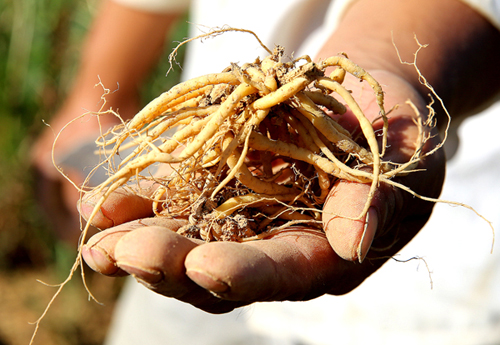 吳正遠在展示收獲個大的太子參