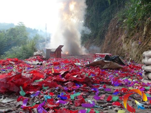 鄰村鄉親燃放煙花炮竹慶賀樂里上寨買得新斗牛