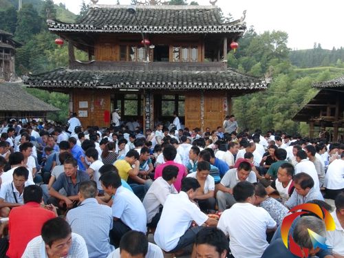 9月9日,榕江縣樂里鎮樂里上寨村買來一頭新斗牛,鄰近21個村寨的1500多侗族群眾聞訊,買來鞭炮和賀禮前往慶賀。上寨的侗族同胞設宴款待了他們,大家對歌飲酒,互致祝福,其樂融融。