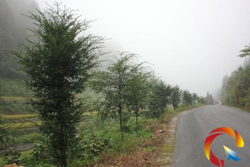 兩汪鄉(xiāng)境內公路旁的紅豆杉綠色長廊