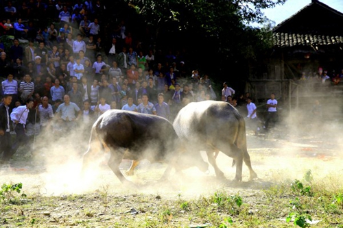 10月11日是農歷九月初七,榕江縣三江鄉友埃苗寨苗族同胞開展斗牛活動,歡度“吃新節”。李長華攝