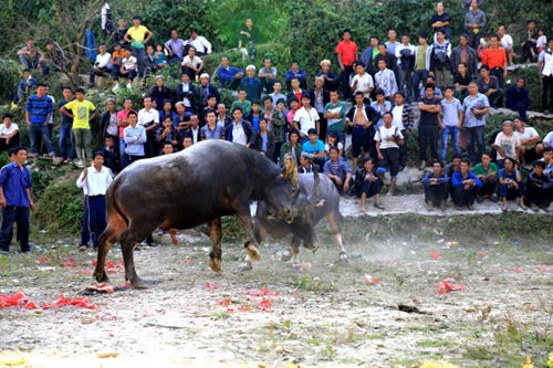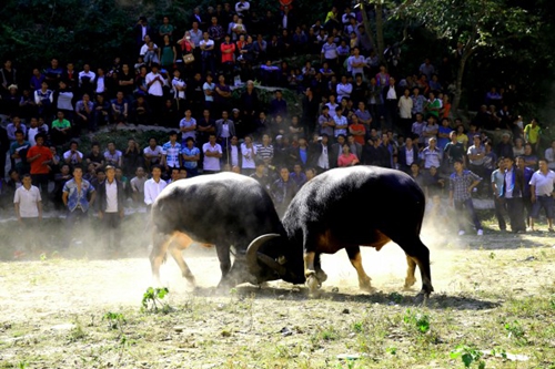 10月11日是農歷九月初七,榕江縣三江鄉友埃苗寨苗族同胞觀看開展斗牛活動,歡度“吃新節”。李長華攝